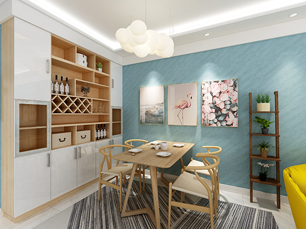 木制桌椅和盆栽相互呼應(yīng),體現(xiàn)人與自然的結(jié)合。白色的頂燈與整體和諧,又體現(xiàn)亮點(diǎn),是點(diǎn)睛之筆。餐桌柜+卡座+收納的設(shè)計(jì),時(shí)尚、體現(xiàn)設(shè)計(jì)感,幾乎不占什么空間,又能將很多生活的雜物收納其中,實(shí)用兼具美觀。