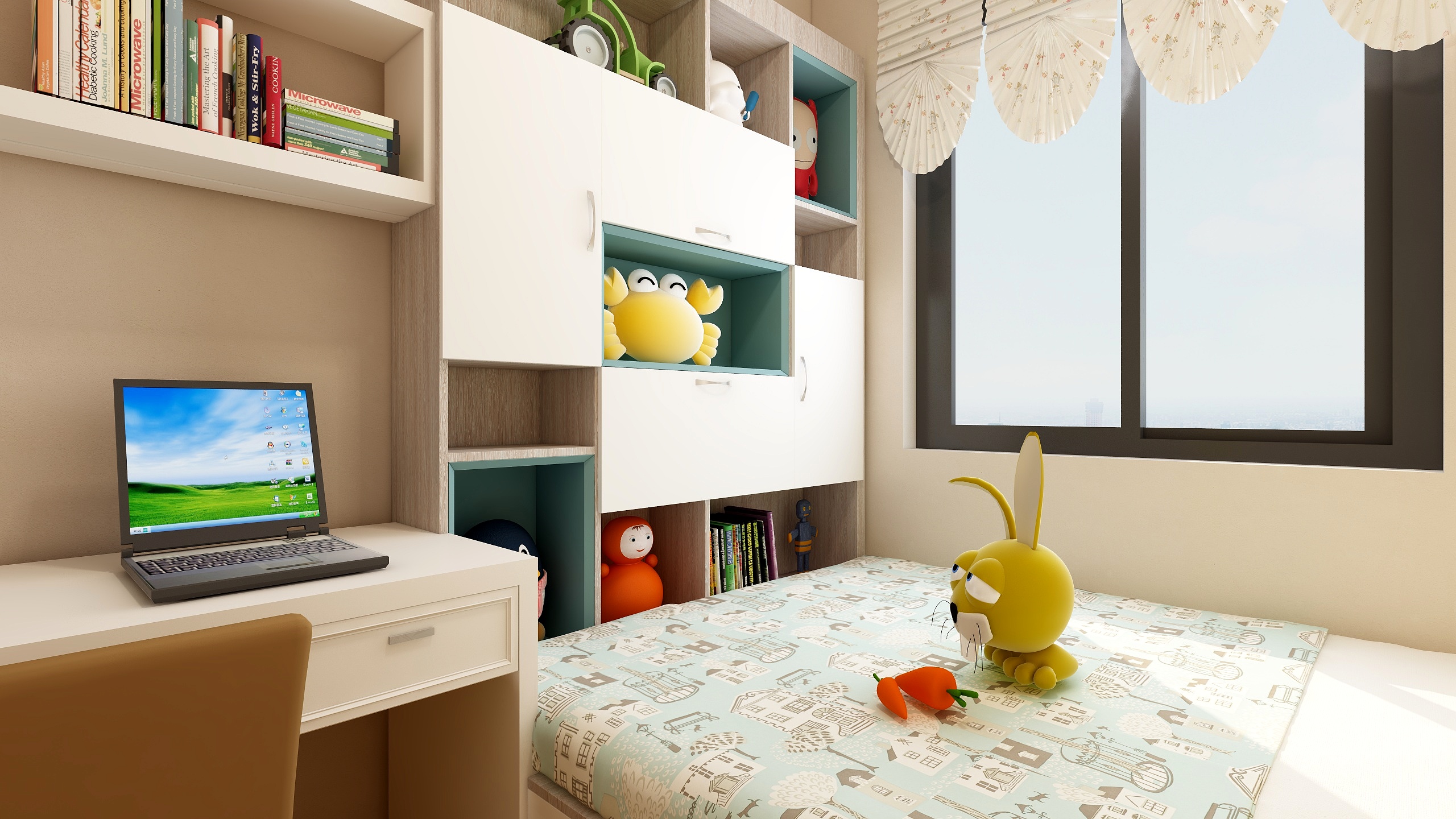 玩具的裝點(diǎn)使兒童房充滿溫馨的同時(shí)更具童趣,黃色、橙色、米白色整體色系和諧,想象小朋友一定會(huì)愛上這樣的裝扮。生態(tài)環(huán)保的墻壁,讓孩子在開心的同時(shí)睡得更放心。