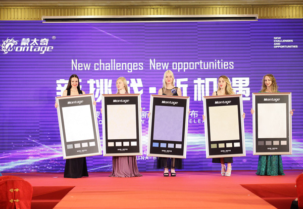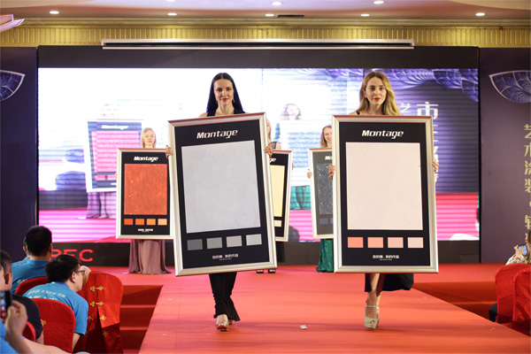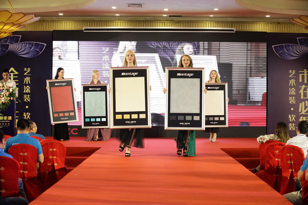 當美麗的模特手持蒙太奇藝術(shù)涂料新品走出舞臺那一刻,現(xiàn)場氣氛瞬間被燃爆,響起雷鳴般的掌聲。