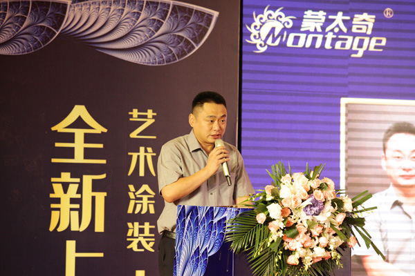 新品發(fā)布會上,中國建筑裝飾裝修材料協(xié)會硅藻泥分會朱秘書長,對建材行業(yè)深度剖析。期間,講到當前市場產(chǎn)品品類多,消費形式升級,企業(yè)或經(jīng)銷商需要尋求新的銷售模式。而蒙太奇將硅藻泥與藝術涂料、軟裝結合,多品類產(chǎn)品必將成為行業(yè)引航者。然后祝賀蒙太奇新品發(fā)布會圓滿成功。