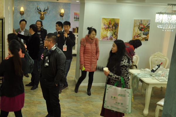 趙總隨后向各位領(lǐng)導(dǎo)、嘉賓朋友們介紹了公司熱銷(xiāo)產(chǎn)品系列,如:硅藻泥、白炭黑、藝術(shù)涂料,還有自主研發(fā)的手工壁紙、無(wú)機(jī)礦物等產(chǎn)品。為跟上時(shí)尚潮流,滿(mǎn)足當(dāng)代消費(fèi)者對(duì)時(shí)尚藝術(shù)的追求,公司原裝引進(jìn)國(guó)外技術(shù),即:藝術(shù)地坪,既不是地板磚,也不是木地板,也不是其它材料,而是直接在水泥上面制作,可以根據(jù)消費(fèi)者的需求選擇地面的顏色及圖案。豐富多彩的產(chǎn)品系列滿(mǎn)足了不同職業(yè)、不同人群、不同風(fēng)格人群的對(duì)生活品味的追求。