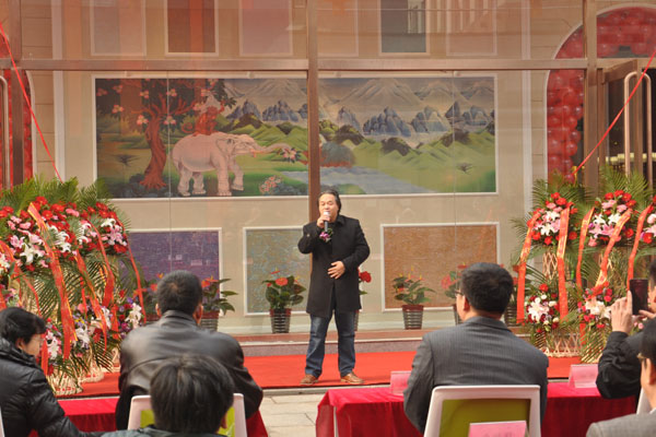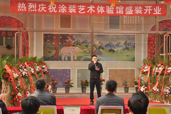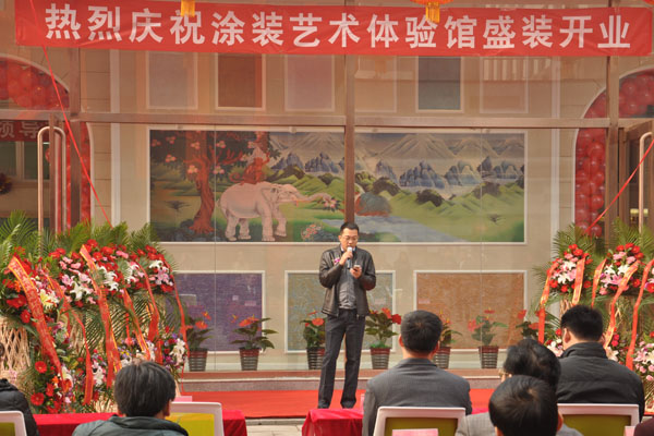 中國(guó)硅藻泥協(xié)秘書(shū)長(zhǎng)朱厚舉為涂裝藝術(shù)體驗(yàn)館開(kāi)業(yè)致辭