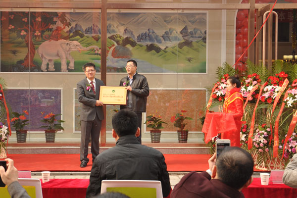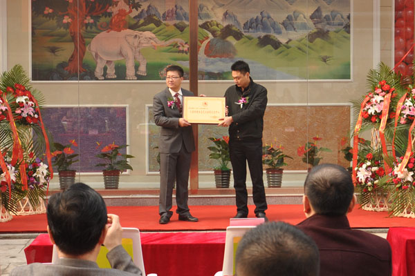 朱秘書(shū)長(zhǎng)為涂裝藝術(shù)體驗(yàn)館頒發(fā)“人居環(huán)境生態(tài)藝術(shù)涂料交流中心”銅牌