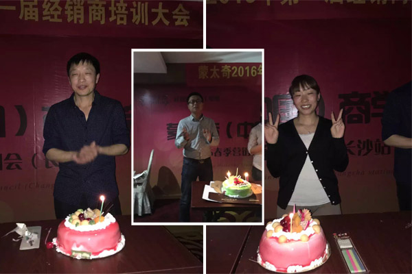 【蘇總】:因為我做的是安徽蚌埠的市代,我的規(guī)劃是五河店已開,下一步就是把固鎮(zhèn)和懷遠縣全部開起來,目前只有我蒙太奇敢在縣城開店。本來這次長沙的培訓是去不了的,但是我覺得還是要給自己“充電”,也要給店內(nèi)人員灌輸點新的品牌知識,就把兩個店的店長帶去學習了一下。這次長沙培訓會和去年的年會都讓我受益匪淺。同時這次也要謝謝方總,正好我是4月12生日,還在長沙過了一次不一樣的生日。