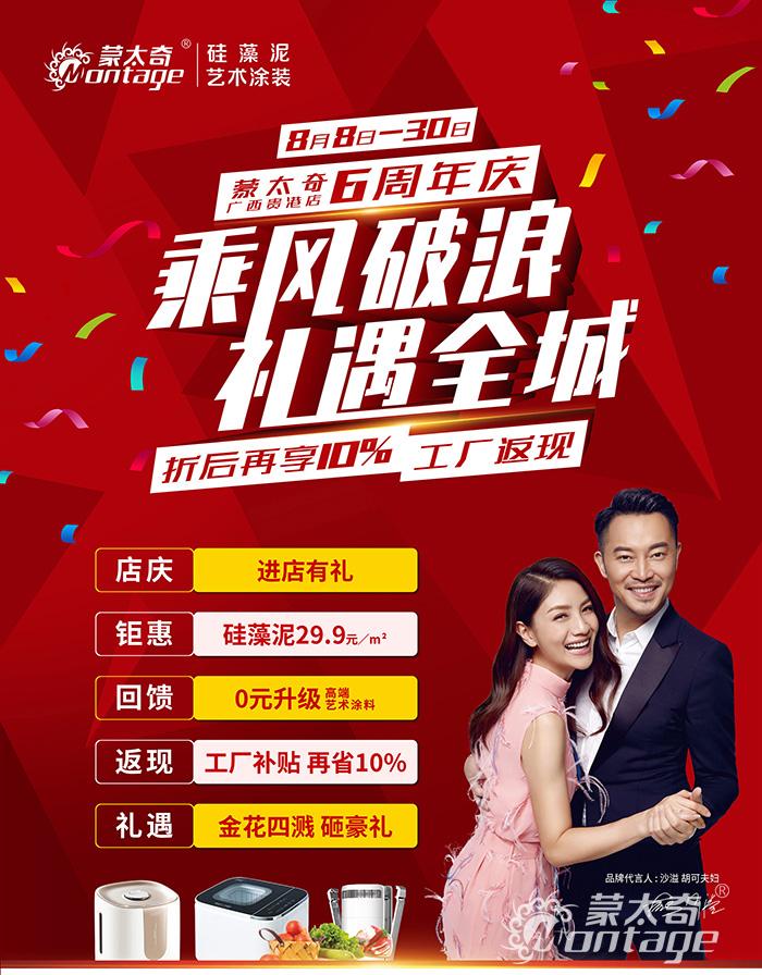 蒙太奇廣西貴港店6周年慶活動正在火熱進(jìn)行中,此次活動優(yōu)惠多多,不僅有0元升級藝術(shù)涂料、還有預(yù)付定金參與工廠補(bǔ)貼,更有驚喜砸金蛋等多重好禮!